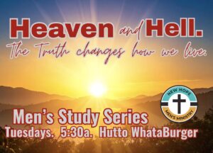 Heaven and Hell…The truth changes how we live. Join us as we study the truth about Heaven and Hell, and how the reality and understanding of both will change the way we live and the purpose we see for our lives.